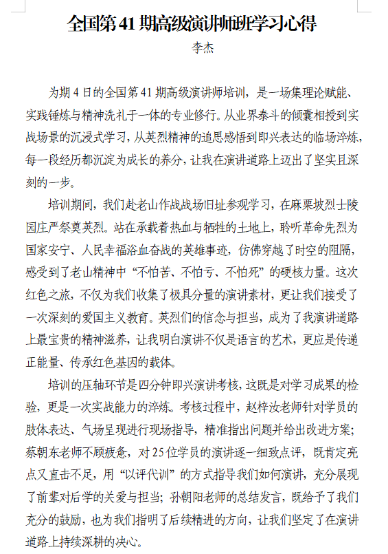 本次高级演讲师班以“理论研讨+实地研学”为核心,汇聚演讲领域专家与爱好者,搭建专业交流平台。理论研讨环节兼顾专业授课与即兴演讲,助力学员精进表达能力;班期全程实行军事化管理,锤炼学员意志。学员赴老山主峰、杜富国排雷广场、麻栗坡烈士陵园等地开展研学,在行走中重温峥嵘岁月、传承红色基因。学员们在专业素养与思想境界上实现双重蜕变,这份成长正是本次班期价值与意义的最佳印证。
