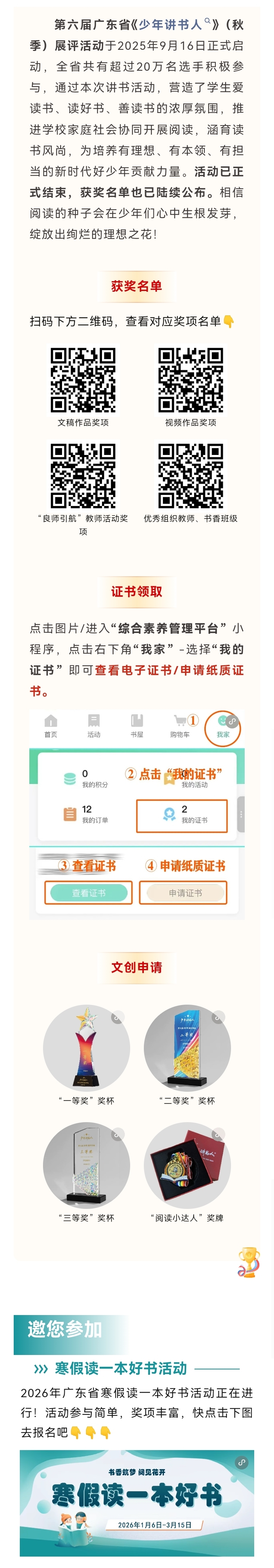 获奖名单+证书领取!第六届广东省《少年讲书人》(秋季)展评活动
