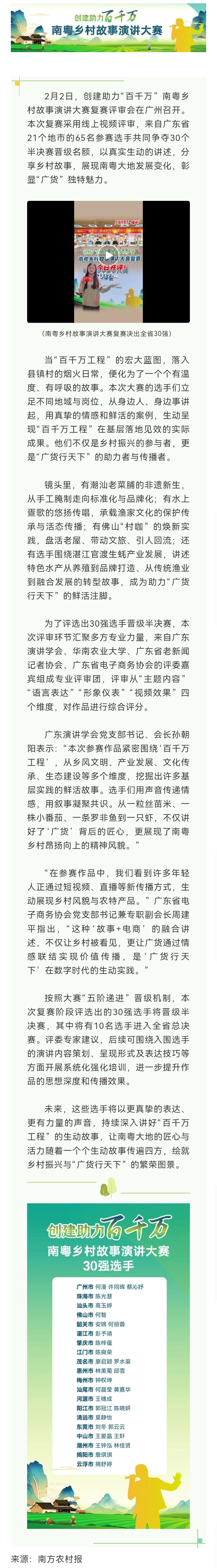 讲好广货故事,传播乡土声音!南粤乡村故事演讲大赛复赛决出全省30强。